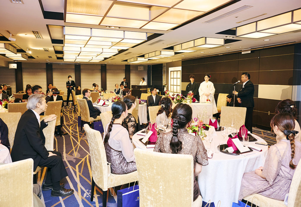 ご親族のみをお招きして熊野神社で厳かに挙式を行い、その後ホテルに場所を移してご友人も交えて和やかな披露宴を催しました。