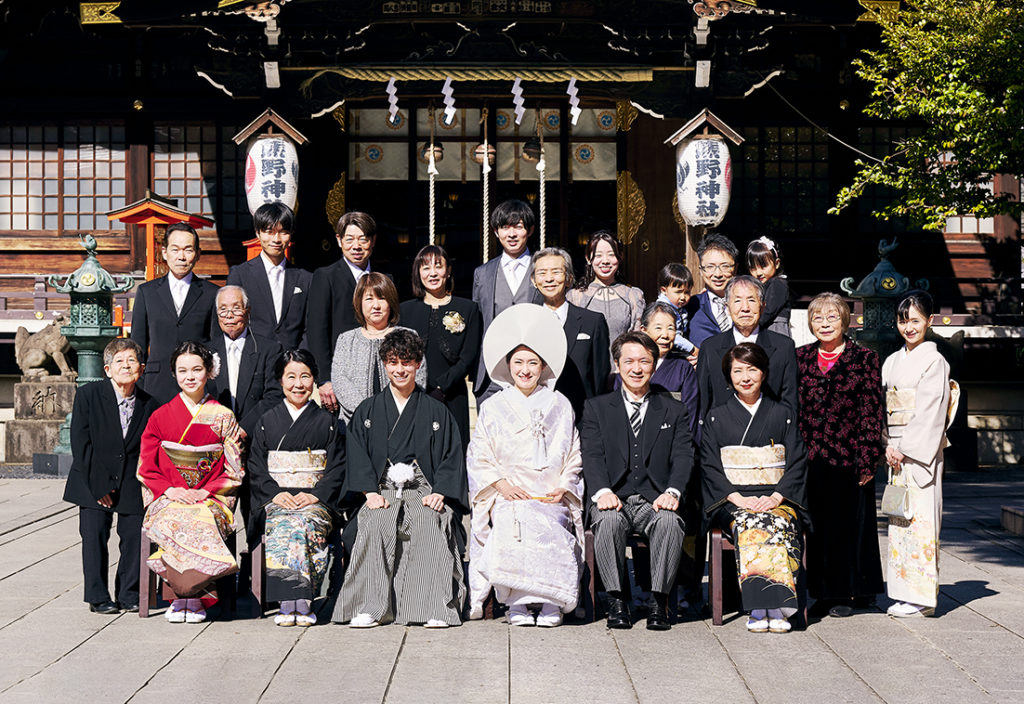 約40分の式では伝統的な神事を行い、ご家族様の集合写真や、お二人のイメージカット等をカメラマン2名で撮影いたします。